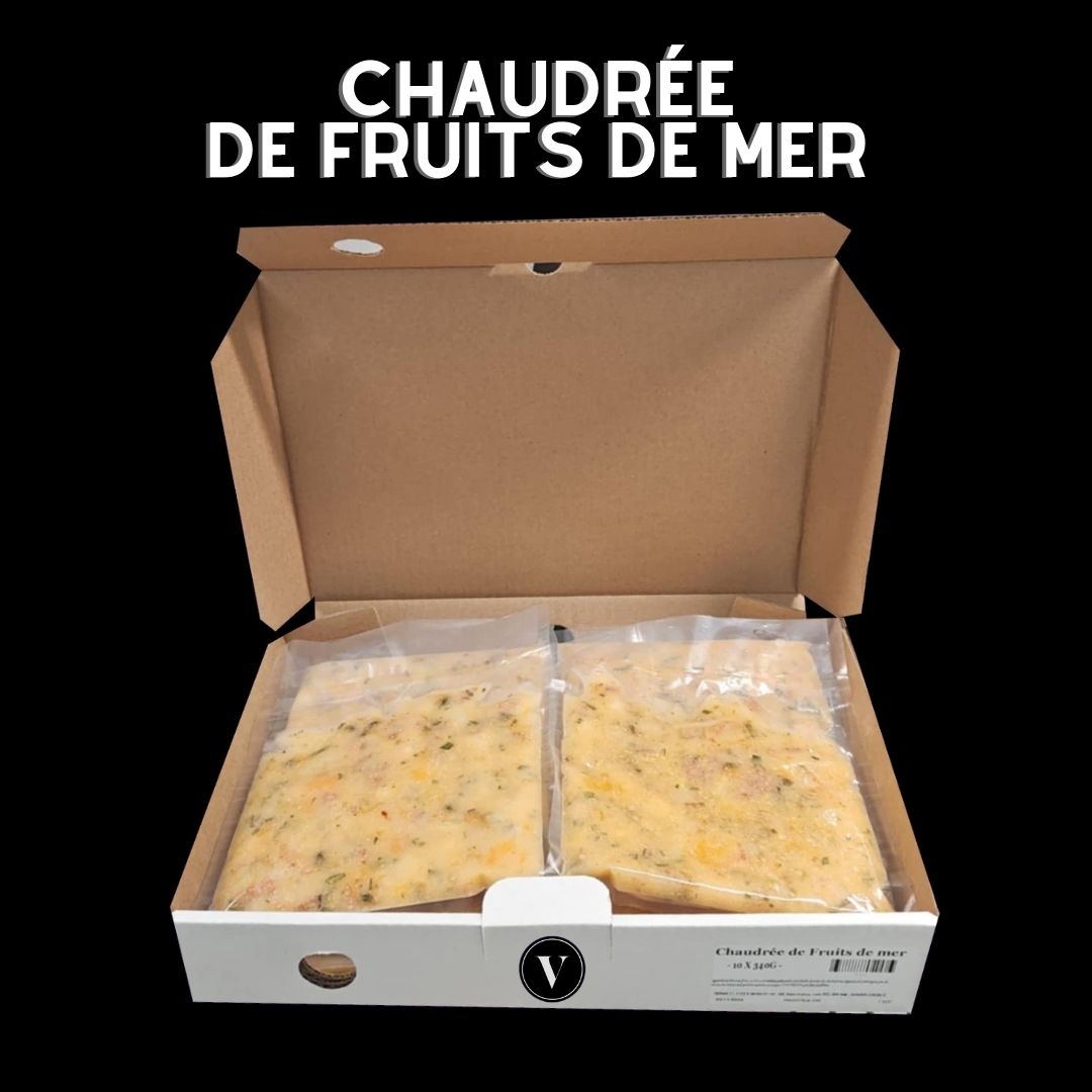 morue, palourdes, crevettes, pétoncle, lait, huile, farine de riz, oignon, ail, estragon, jus de citron (jus de citron, eau, concentré), sodium benzonate, sodium métabisulfite, sodium sulfite, huile de citron, vin blanc, sel, poivre, patate, courges