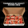 poulet, eau, sucre mélasse en poudre, sel, épices, phosphate de sodium, chili mexicain en poudre, tomate en poudre, protéine hydrolisé de soya, amidon de mais, jus de citron, arôme de fumé, bacon (porc, eau, sel, erythorbate de sodium, phosphate de sodium, épices, nitrite de sodium, fumée)