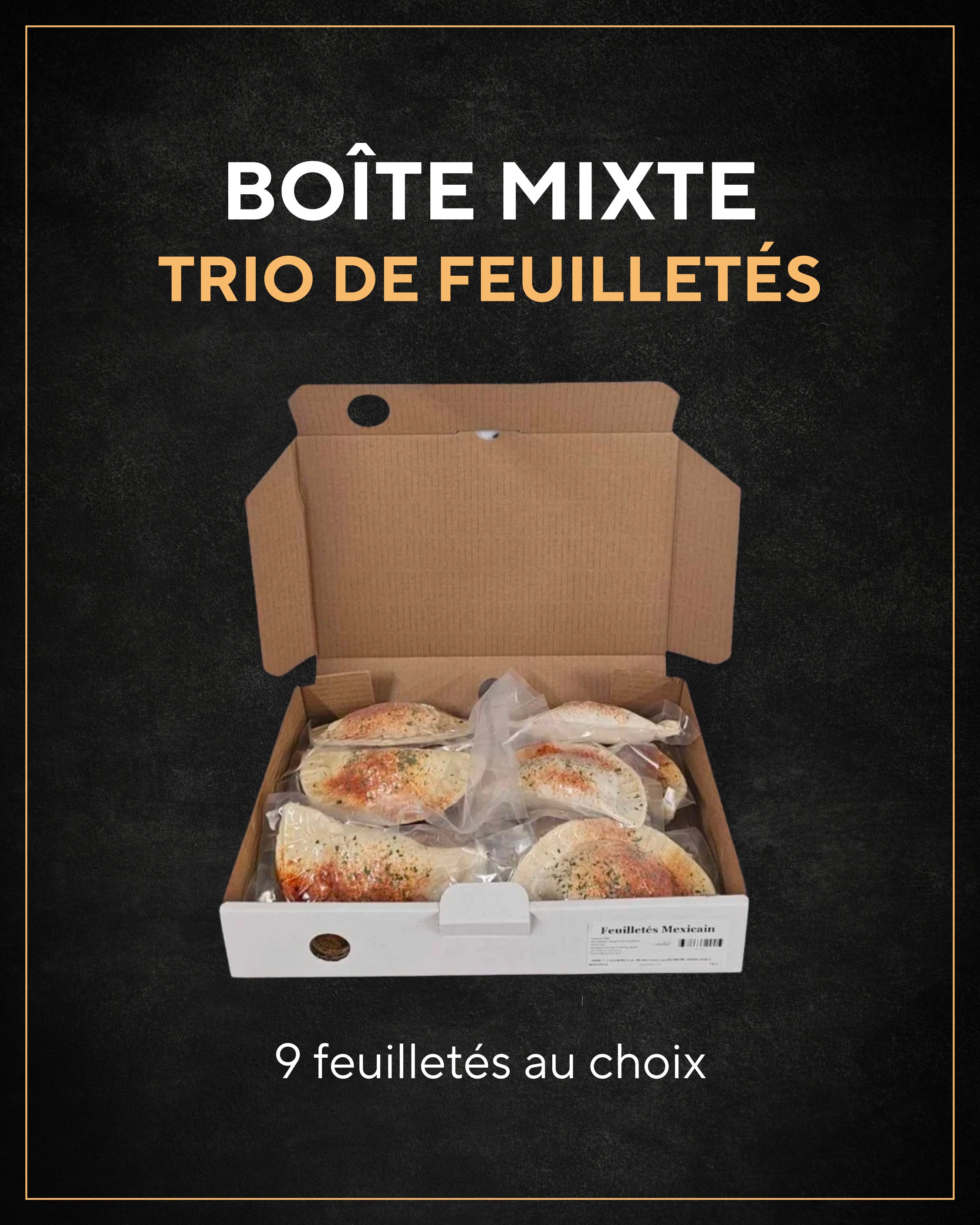 pâte feuilleté (eau, margarine, farine, sel), boeuf haché, poivrons, oignon, ketchup (pâte de tomate, sucre liquide, vinaigre blanc, sel, poudre d'oignon, épices), sauce chili (pate de tomate, eau, sucre, vinaigre, sel, oignons déshydratés, graines de tomate, graines de moutarde, épices, ail en poudre), relish (concombres, sucre et/ou glucose-fructose, eau, vinaigre, amidon de mais modifié, sel, chlorure de calcium, benzomate de sodium et/ou sorbate de potassium, épices, gomme xanthane, arômes naturels et/ou artificiels, colorant), sel, mozzarella (lait partiellement écrémé pasteurisé, substances laitières modifiées, culture bactérienne, sel, chlorure de calcium, enzyme microbienne, cellulose, natamycine), persil, paprika