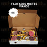 boeuf, mayo(oeuf,huile), eau, huile, échalote grise, tomates séchées(sulfites), tomate en poudre, sel, sucre, épices, phosphate de spdium, tomate déshydratée, basilic déshydratés, protéines végétales(soya), ail déshydratés, érythorbate de sodium, huile, acide citrique, parmesan, câpres, noix dee pins grillées, vinaigre balsamique blanc, proscuitto, sucre, sel, poivre, tabasco