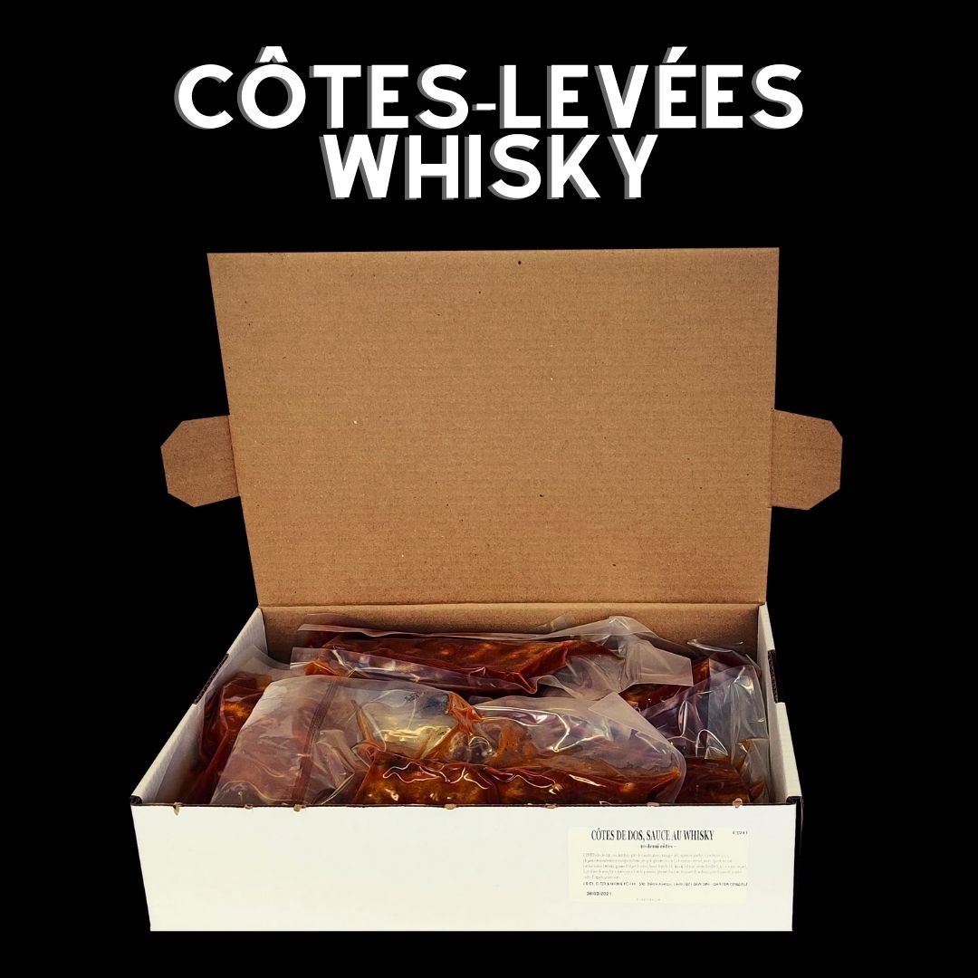 porc, sauce whisky, sauce worcestershire (vinaigre, sucres (mélasse verte, glucose, eau), eau, sel, caramle, épices, anchois (poisson), arôme naturel (soya), extrait de tamarin, silicone de diméthyle), sauce soya (eau, soja, blé, sel, benzoate de sodium, agent de brassage (aspergillus soja), ail, moutarde de dijon (eau, graine de moutarde, vinaigre, sel, sulfites), fumé liquide, pâte de piment, sel de céleri, sel d'oignon, poivre, épice de bois de pommier (moutarde)