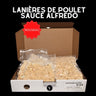 8 Portions de 400g. Poulet déjà cuit dans une sauce Alfredo maison. Idéal à servir sur des pâtes, du riz, un vol-au-vent, etc.