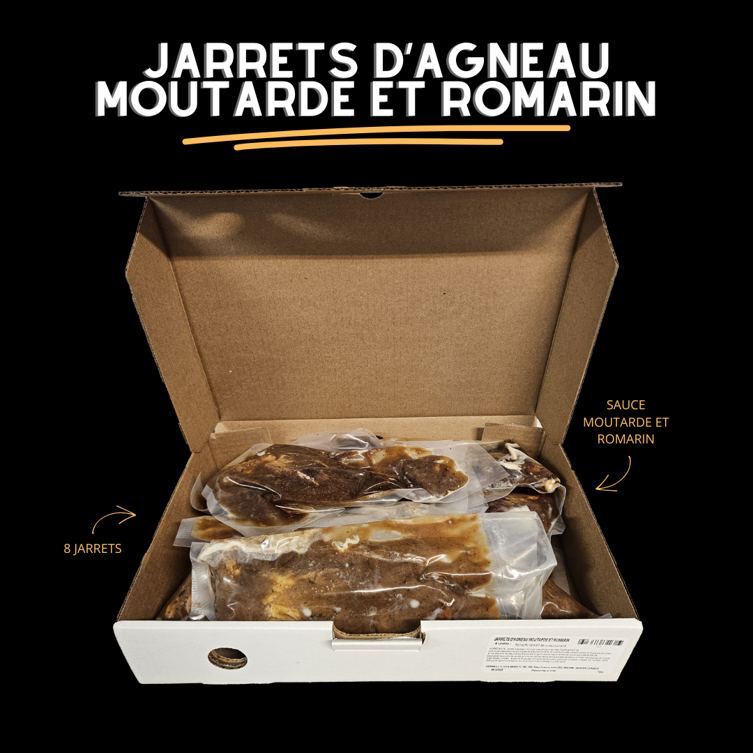 Jarrets d'Agneau vendus en boîte de 8 unités.