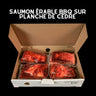 saumon, cassonade, eau, légumes déshydraté (tomate, oignon, ail), sucre, sel, épices, dextrose, sucre d'érable, diacétate de sodium, poudre de mélasse (maltodextrine), poudre de sauce worcestershire sans anchois (maltodextrine, vinaigre, mélasse, sirop de mais, sel, couleur caramel, poudre d'ail, sucre, épices, tamarin, arôme naturel, sulphite, huile, d'ioxide de silicium