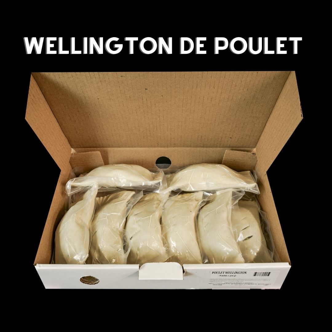 Wellington de poulet vendus en boite de 8 unités de 250g chacun.