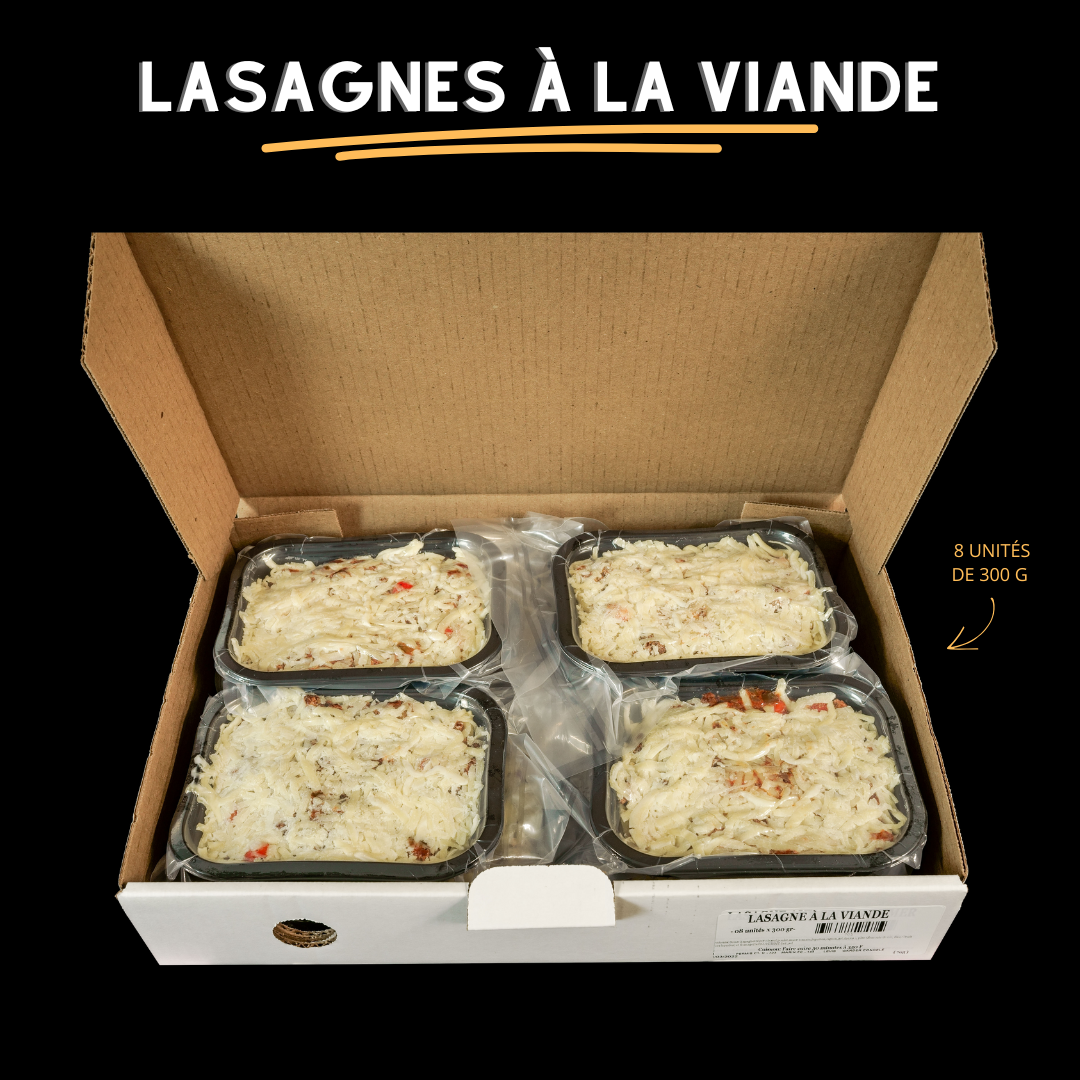 Lasagnes à la viande vendues en boîte de 8 unités de 300 gr.