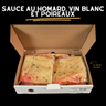 homard, lait, roux (farine de riz, huile), poireau, vin blanc, base de homard (chair de homard cuite (homard, sel), sel, sucres (maltodextrine de mais, sucre), arôme (moutarde, homard, morue, sulfites, céleri), eau, extrait de levure, huile de mais, substance laitière, pâte de tomates, flocons de pomme de terre ( pomme de terre, mono et diglycérides), poudre d'oignon et d'ail, inosate disodique, guanylate disodique, paprika, épices, herbes),jus de citron (jus de citron de concentré (jus de citron d'eau, concentré), sodium benzoate, sodium métabisulfite, sodium sulfite, huile de citron), ail, poivre, sriracha, moutarde de dijon (eau, graine de moutarde, sel, vinaigre, sulfites), estragon