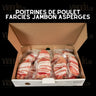 Poitrines de poulet farcies jambon et asperges vendues en boite de 12 unités de 220 gr.
