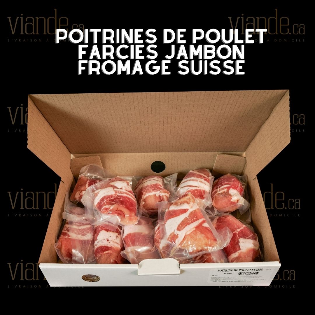 12 poitrines farcies de jambon et de fromage suisse, entourées de bacon