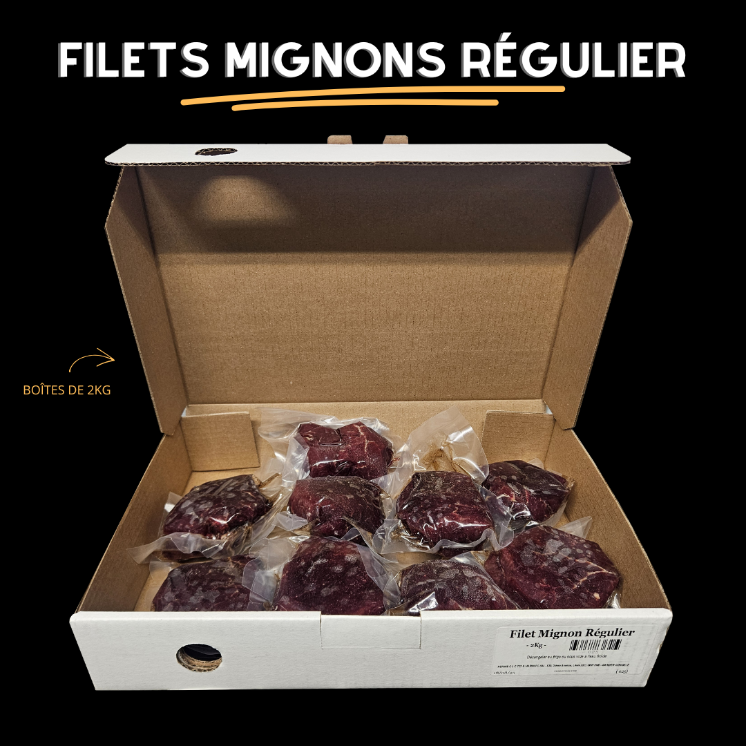 Filets mignons de boeuf régulier vendus en boite de 2 kg.