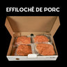 Boîte d'effilochés de porc vendu en boite de 10 unités de 200 gr.