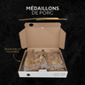 Médaillons de porc cuits en sauce crème, miel, moutarde et estragon. 8 portions de 450g.