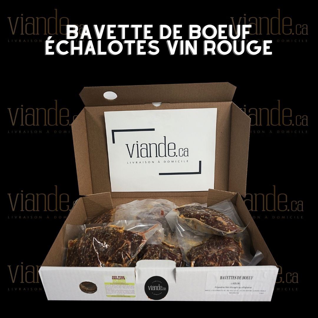 bavette de boeuf, vin rouge(vin, sel, sulfites), oignon, sucre, levure, huile, caramel en poudre, cassonade, soya(eau, sel, sucres(glucose-fructose), caramel, protéine de soya, benzoate de sodium, moutarde de dijon(eau, graine de moutarde, vinaigre, sel, sulfites), ciboulette, ail, épices, sulfites