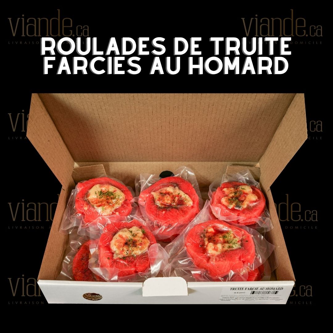 Roulades de Truite farcies au homard vendues en boîte de 10 unités de 200g.