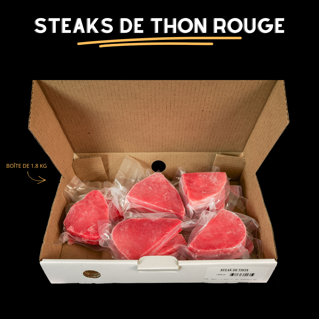 1.8 kg de steaks de thon rouge.